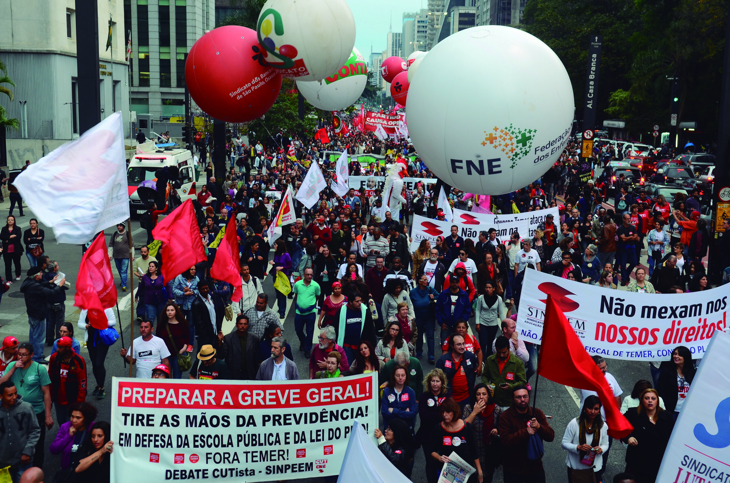 São Paulo – Manifestação das centrais sindicais CUT, Força, UGT, CTB, CSB, CGTB, NCST e CSP-Conlutas e Intersindical, contra a retirada de direitos trabalhistas na Avenida Paulista (Rovena Rosa/Agência Brasil )