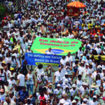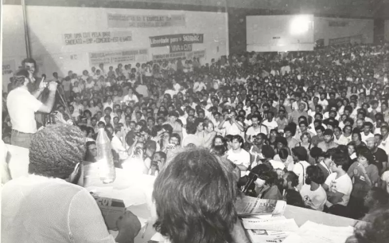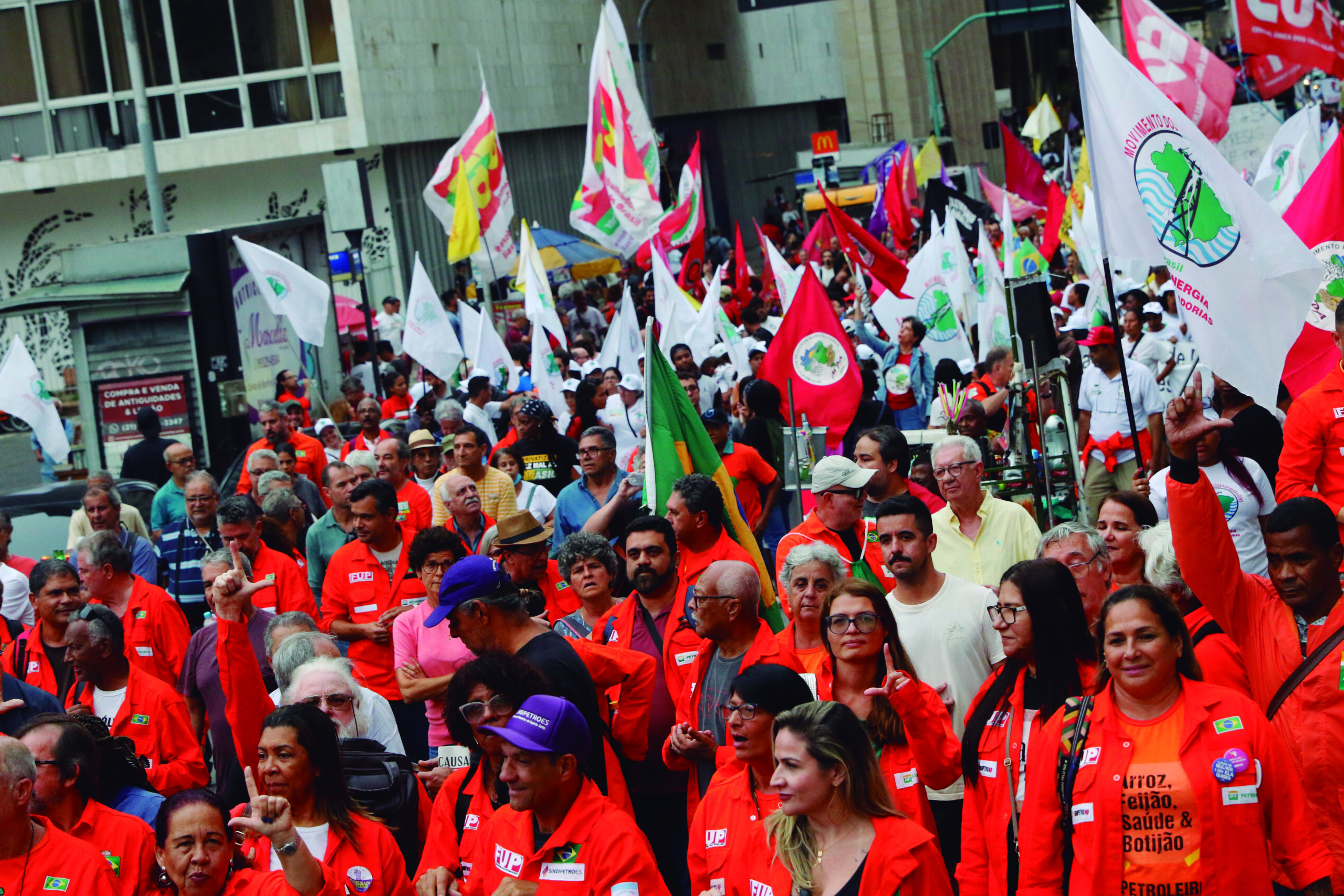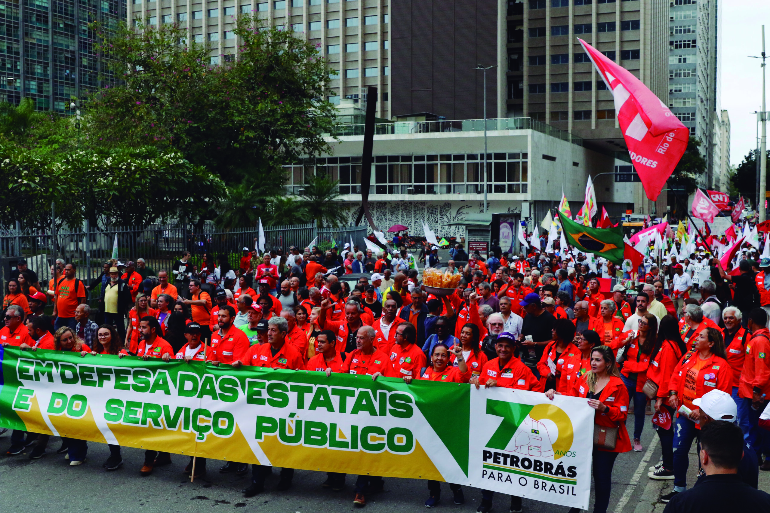 Rio de Janeiro (RJ), 03/10/2023 – Trabalhadores, centrais sindicais e movimentos sociais fazem ato pelos 70 anos da Petrobras, em frente ao edifício sede da empresa, no Centro. Foto: Fernando Frazão/Agência Brasil